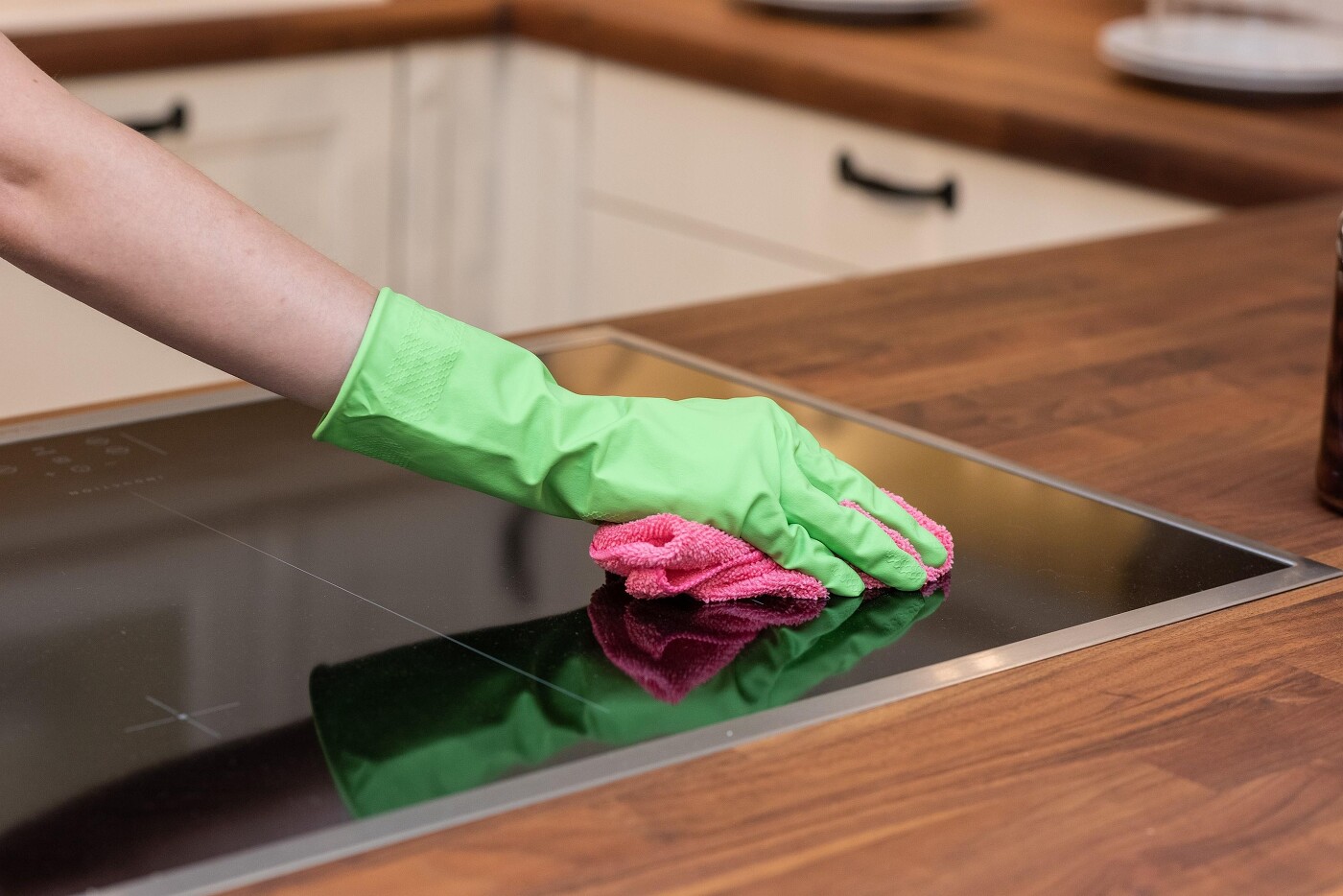 Große Spritzer entfernt man am besten sofort: Frische Flecken lassen sich wesentlich leichter entfernen. Insgesamt bedeutet die regelmäßige Pflege Ihrer Einbauküche Werterhaltung und verlängert deren Lebensdauer. Nicht zuletzt halten Sie Ihre Küche auf diese Weise in hygienisch einwandfreiem Zustand.