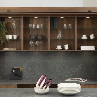 So vieles spricht für Keramik: Sie ist pflegeleicht, kratz- und schnittfest, hygienisch und UV-beständig. Fleckenbildung ist so gut wie nicht möglich: Keramik besitzt eine nahezu geschlossene Oberfläche, daher ist auch keine Imprägnierung nötig. Und wie elegant es allein aussieht, wenn Küchenfronten, Arbeitsplatte und Wangen alle mit derselben Keramik gestaltet sind!