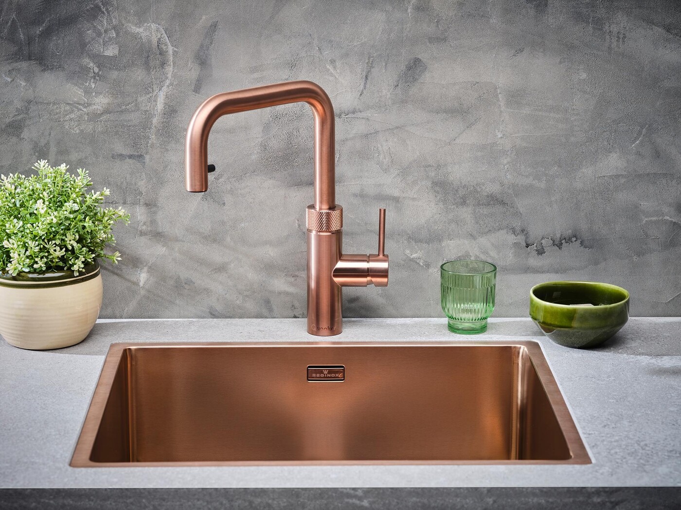 Der warme, raffinierte Farbton von Copper Rosé passt wunderbar zum eleganten Glanz von Kupfer Rosé und schafft so ein luxuriöses und harmonisches Gesamtbild in jeder Küche. Die Reginox New York Copper Rosé ist in zwei Größen erhältlich: 50×40 cm und 40×40 cm. In Kombination mit dem Quooker Kupfer Rosé entsteht eine einzigartige Küchenlösung, die sowohl ästhetisch als auch praktisch überzeugt.