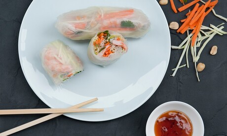 Mögliche Zutaten sind Karotten, Gurken, Eisbergsalat, Koriandergrün, gegarte Glas- oder Reisnudeln, Kohlrabi, Mango, Erdnüsse, Sprossen, Koriandergrün, Schafskäse ... Genauso gut passen auch Hähnchenfleisch, Lachs oder Shrimps – jeweils vorgegart. Als Dips eignen sich Sojasauce, süße Chilisauce, Sesamsauce oder eine Erdnusssauce.
